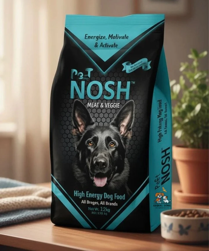 Pet Nosh High Energy Adult Dog Food Meat & Veggie is a complete dry diet for adult dogs of all breeds, designed to provide high energy, muscle support, and balanced daily nutrition.