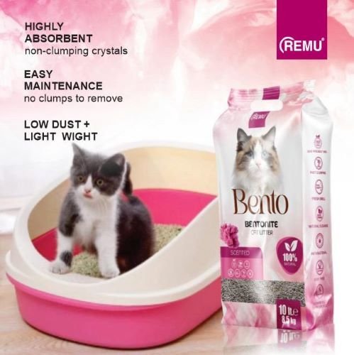 Remu Bentonite Cat Litter – Rose Scent (10 L) is a premium, super‑clumping cat litter infused with a delicate rose fragrance to help keep your home smelling fresh. Made from high‑quality bentonite clay, it forms firm, easy‑to‑scoop clumps on contact with moisture, effectively locking in odors and moisture for cleaner litter box maintenance. The subtle rose scent enhances odor control, while the low‑dust formula helps reduce tracking and is gentle on your cat’s paws and respiratory system. Ideal for daily use, this 10 L pack offers reliable performance and freshness for both single and multi‑cat households.